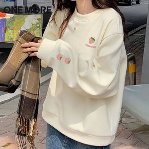 onemore加绒圆领卫衣女宽松加厚