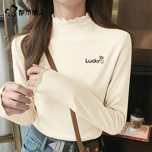 韩版加绒加厚一体绒针织打底衫女秋冬显瘦上衣内搭半高领保暖毛衣