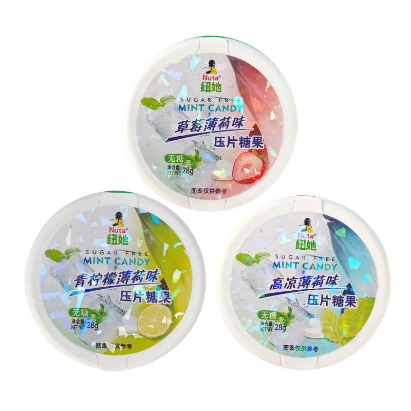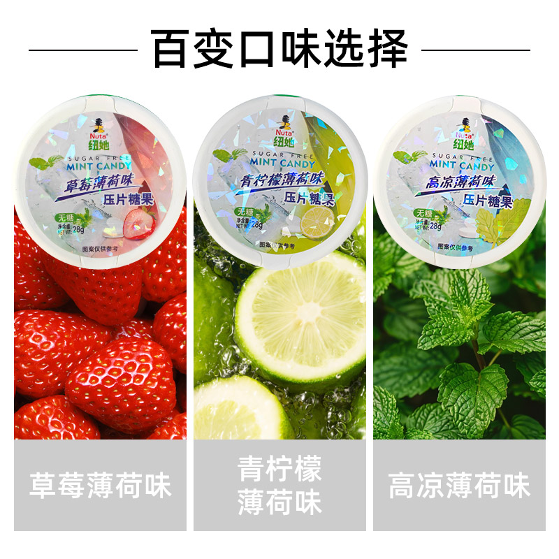 Nuta纽她无糖薄荷糖果味富含维C压片糖清新口气便携圆盒装硬糖28g