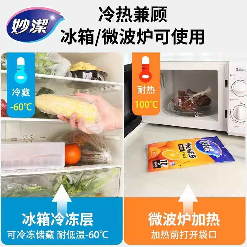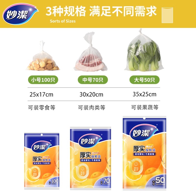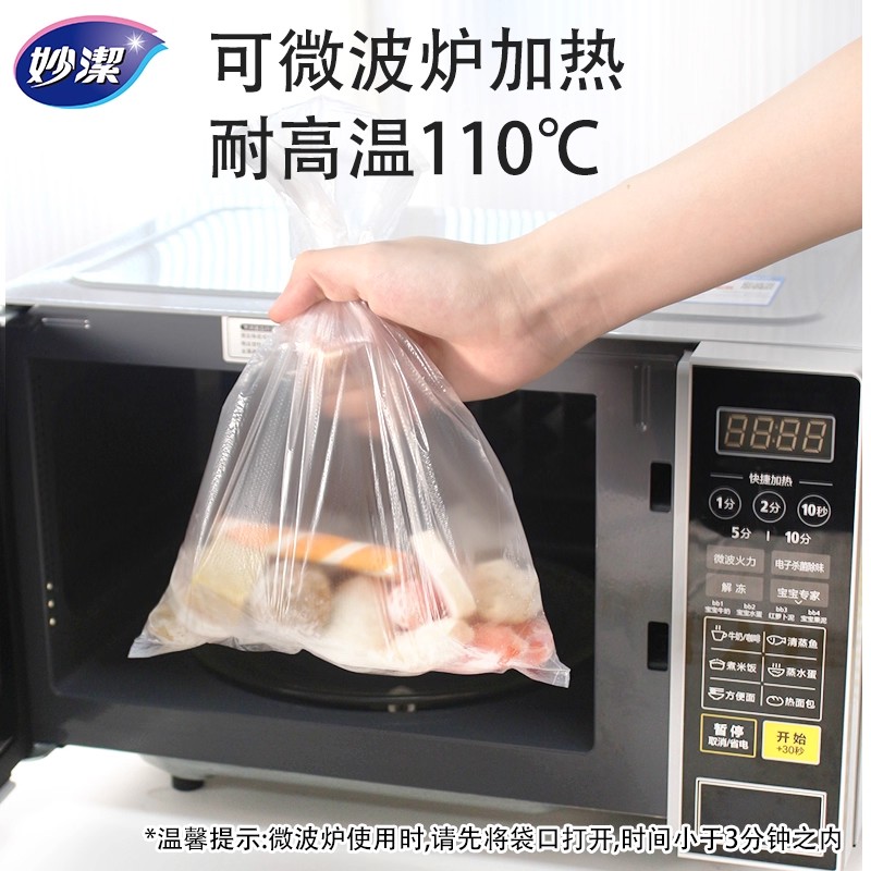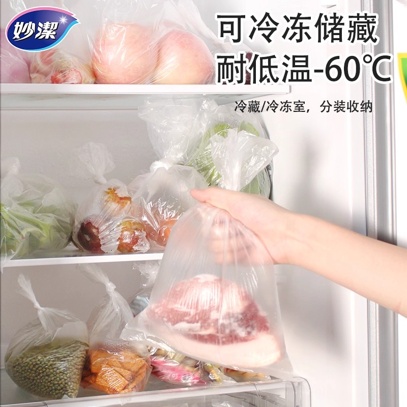 【到手4.9】100只装妙洁保鲜袋食品级袋子卷装背心抽取式家用大中小号厨房加厚冰箱。