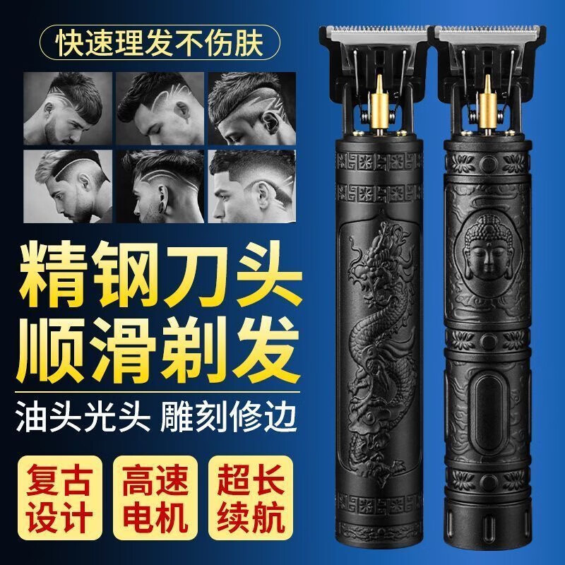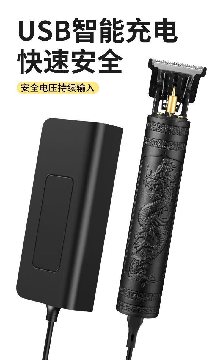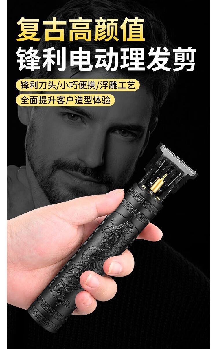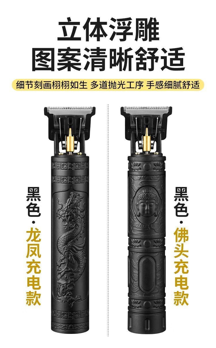光头神器剪发器美发电推子电动理发器电推剪油头雕刻剃头刀光头理发剪 黑色龙凤 便携装