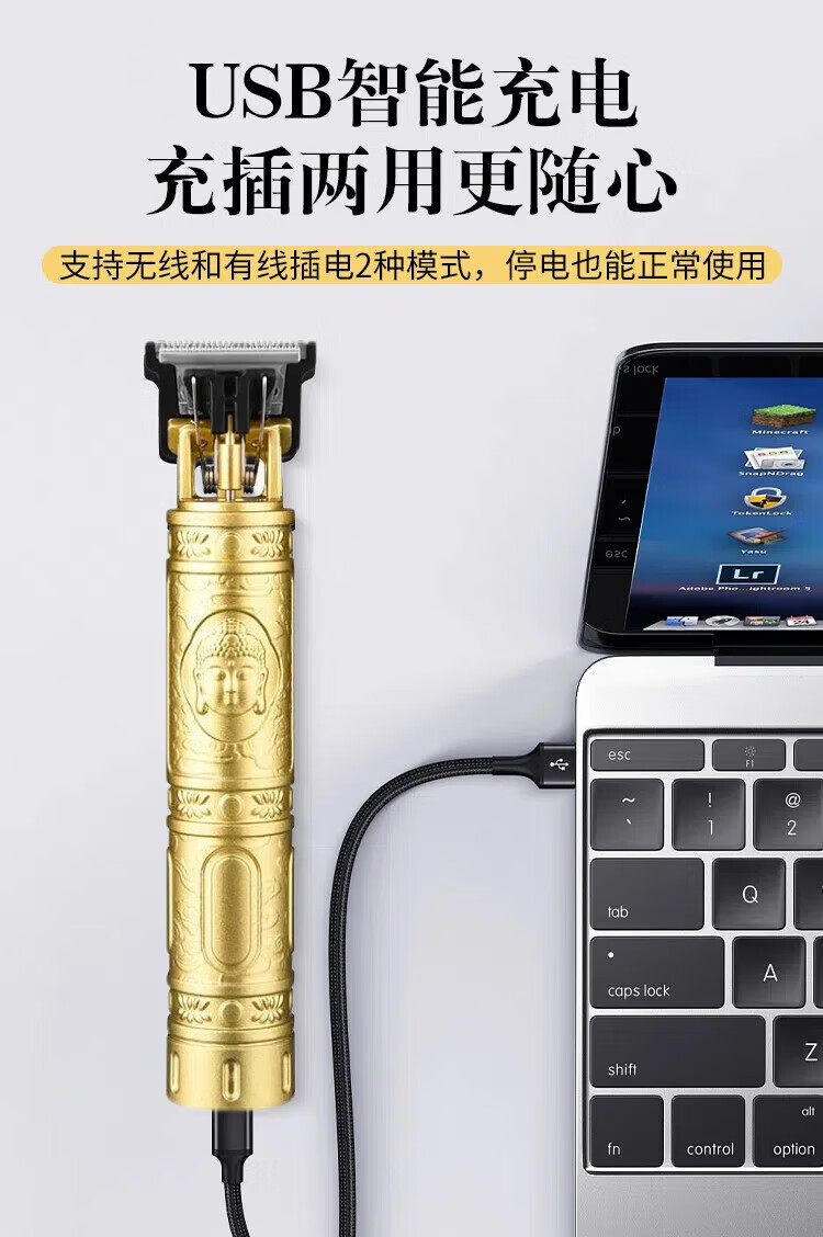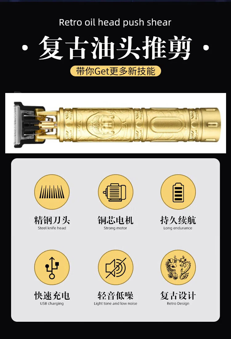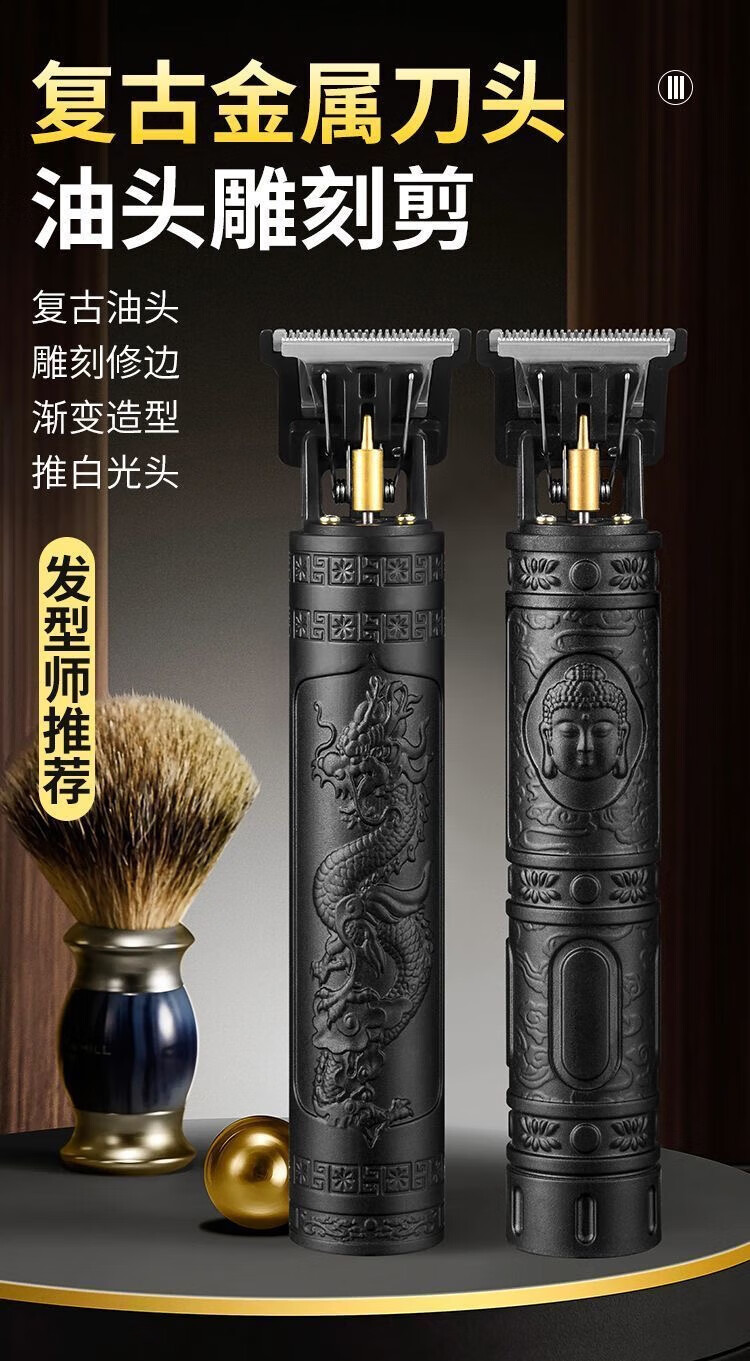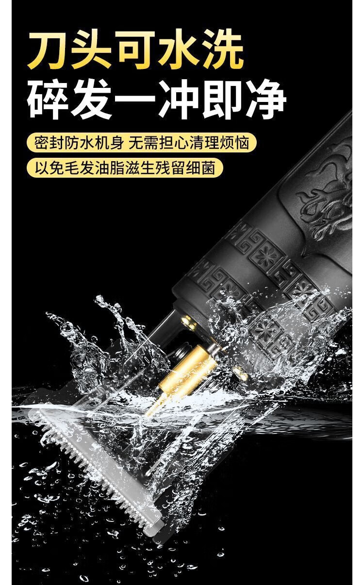 光头神器剪发器美发电推子电动理发器电推剪油头雕刻剃头刀光头理发剪 黑色龙凤 便携装