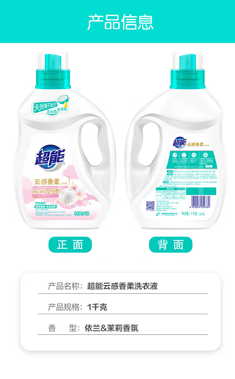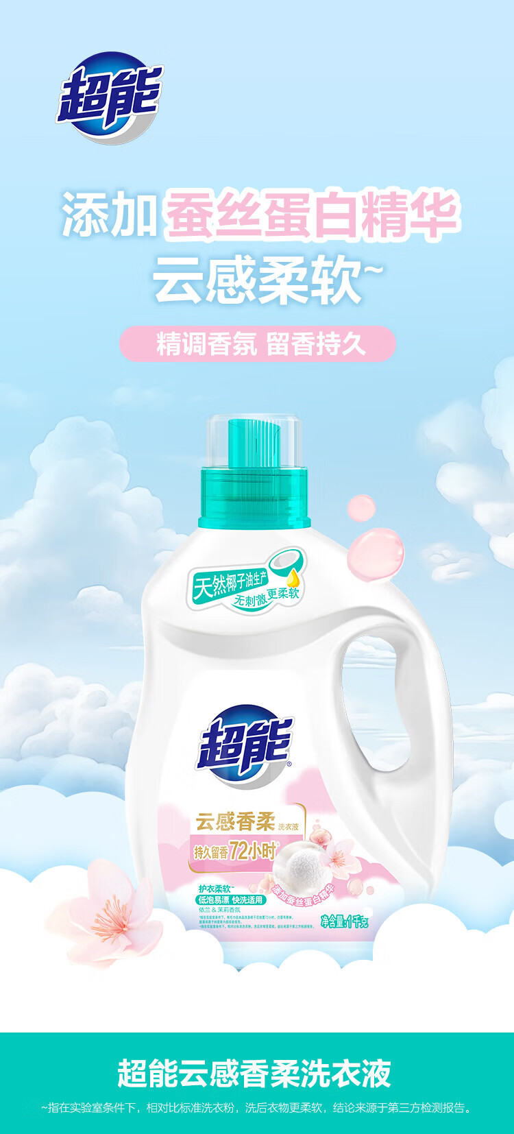 超能云感香柔洗衣液去渍多规格添加蚕丝蛋白精华持久留香低泡易漂护衣 500g*10袋 【10斤】