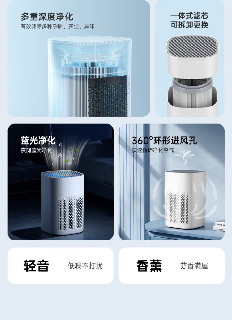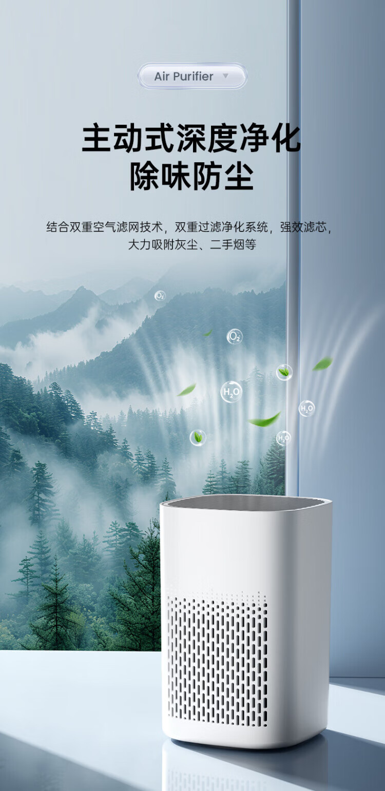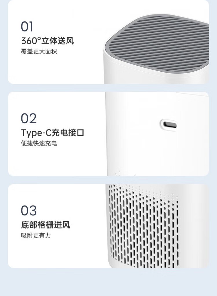 WCZ德国家用卧室空气净化器家用室内除二手烟除PM2.5小型USB通用 LK黑色【食品级硅胶】
