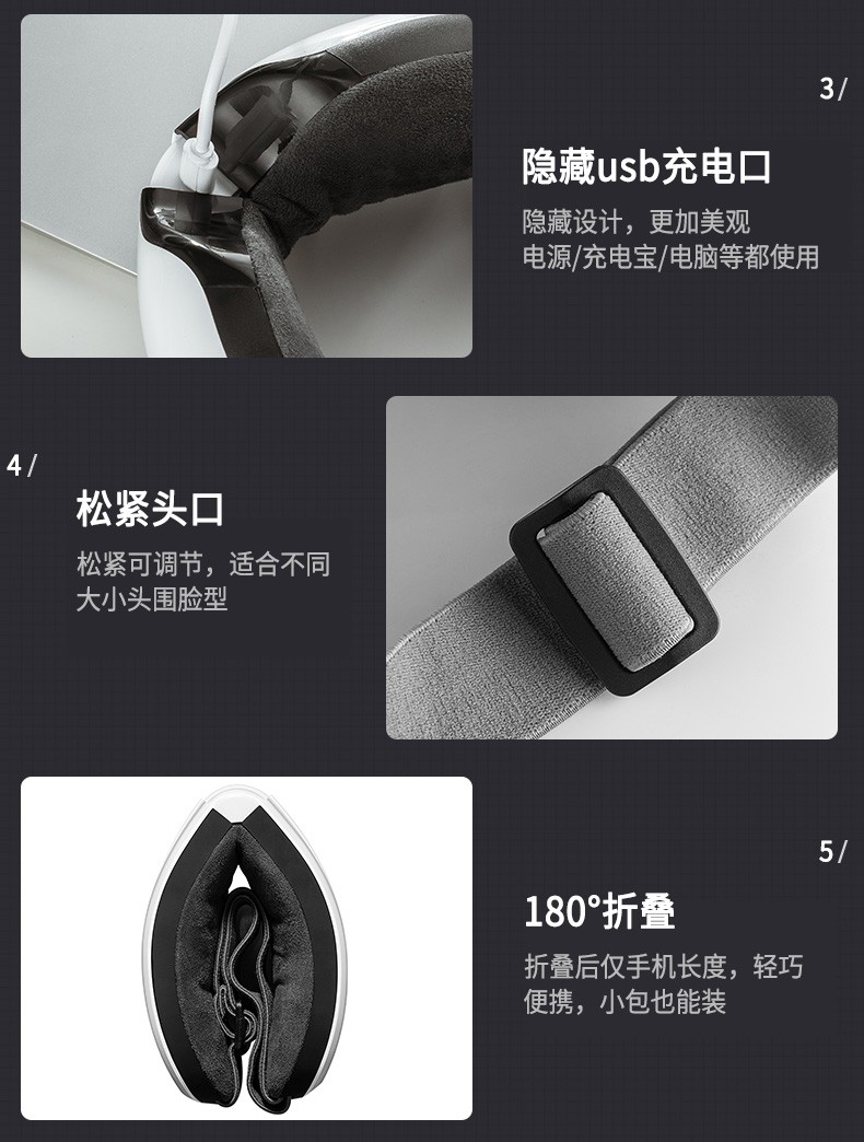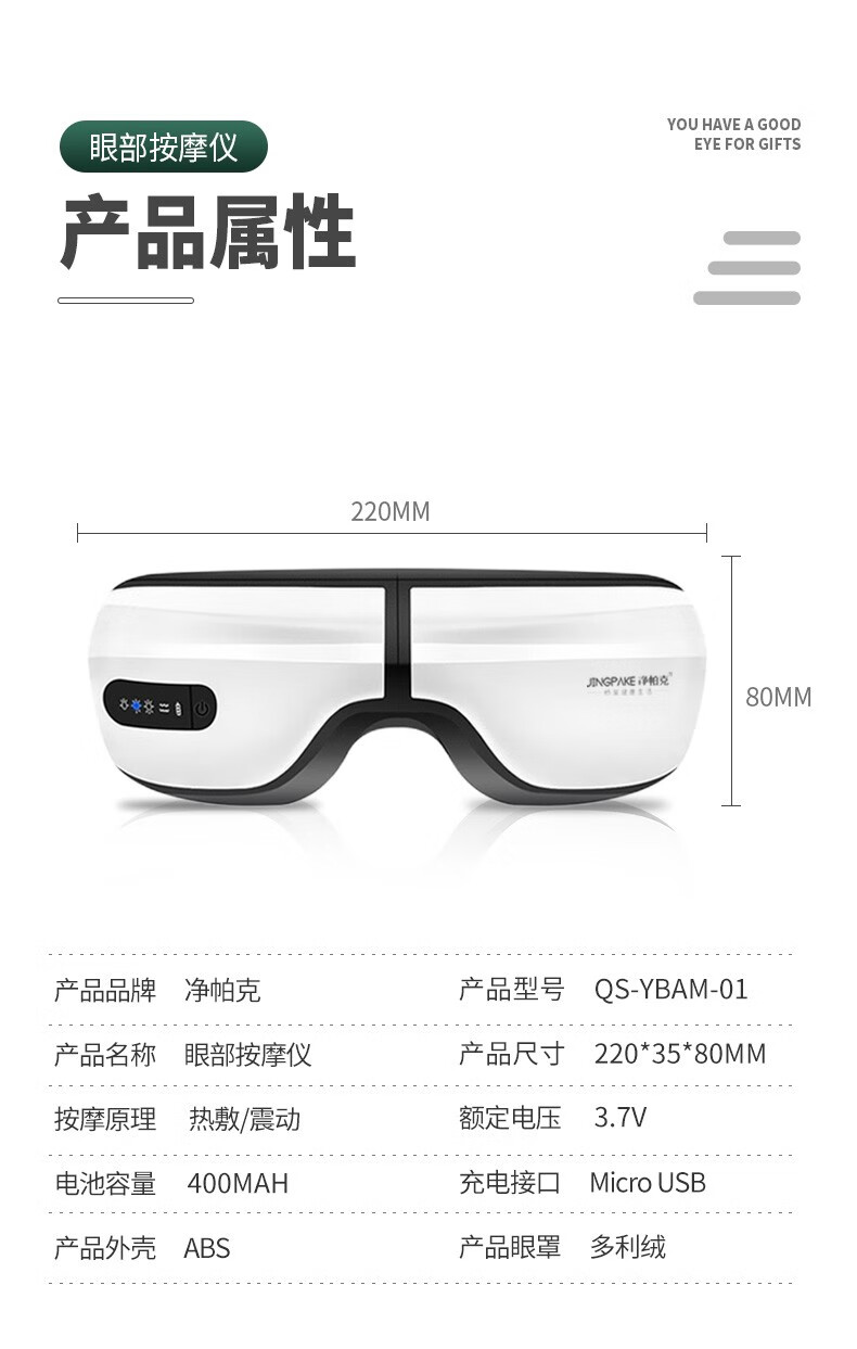 净帕克 眼睛眼部按摩仪护眼仪眼保仪眼镜热敷眼罩按摩器震动成人儿童生日礼物 白色(热敷+震动+充电)