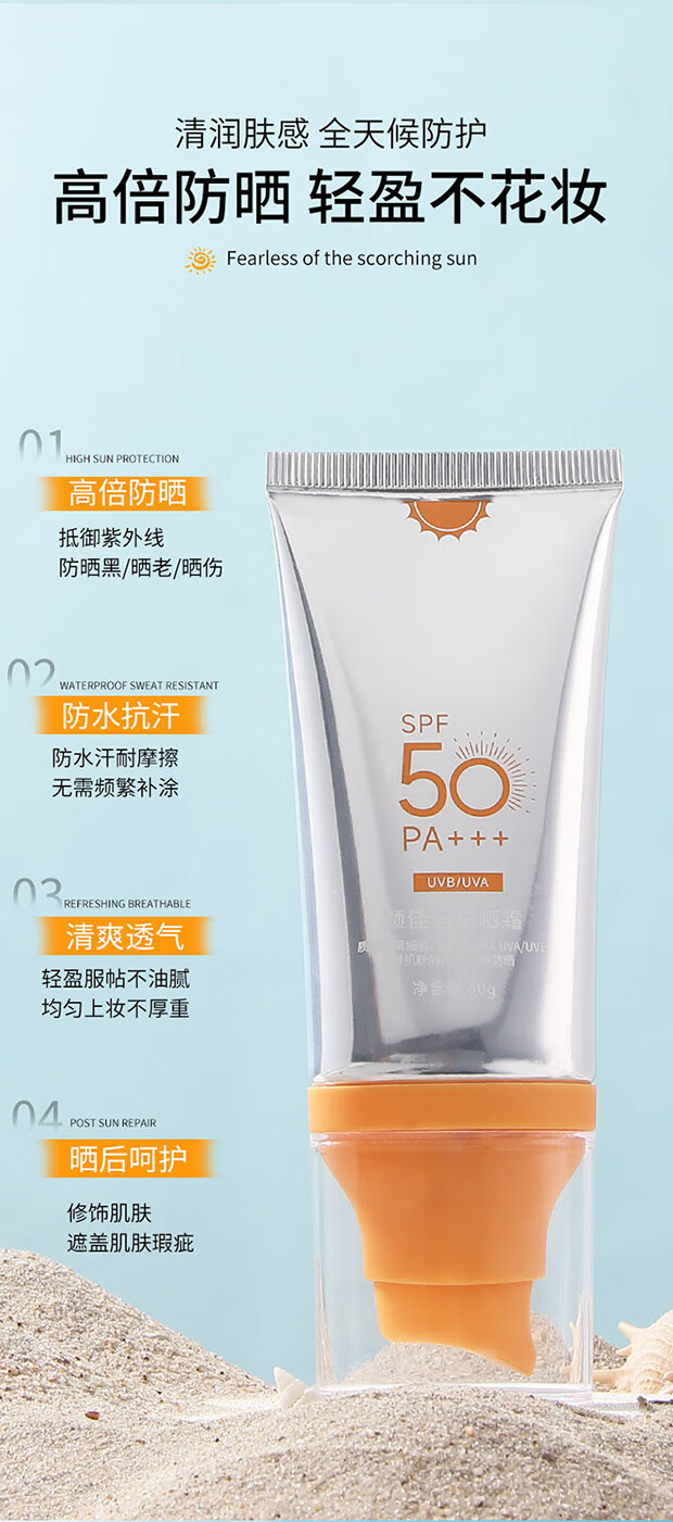 LIFUSHA防晒霜SPF50全身面部乳防水清爽不油腻男女士防水防晒 防晒霜60g x3支·