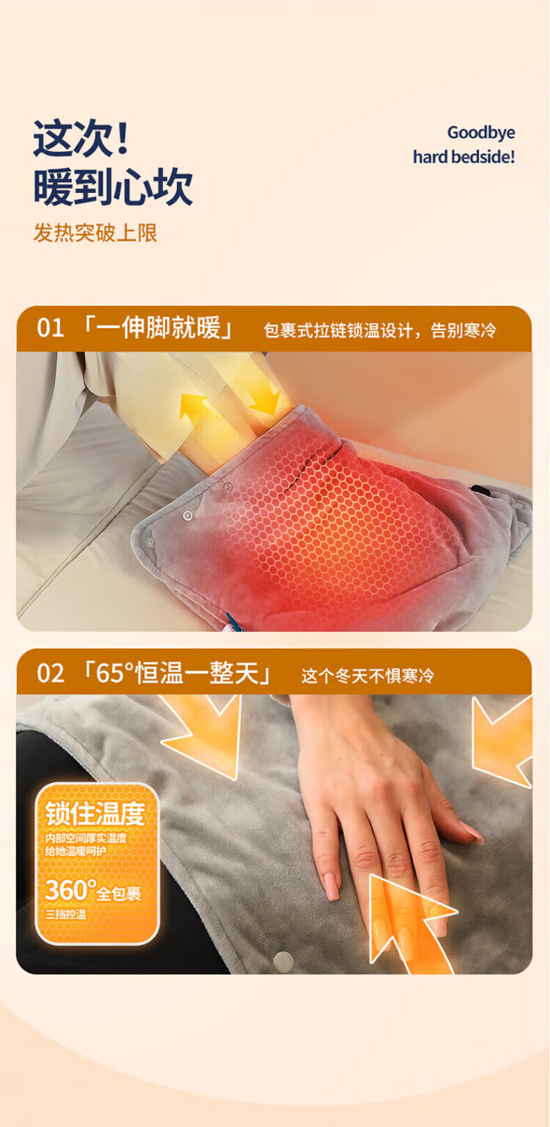 户璃德国石墨烯暖脚宝电加热床上睡觉暖脚袋被窝专用暖脚垫桌下暖脚冬 碗 7寸 17.5cm