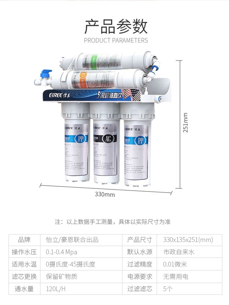 豪恩(怡立) 家用商用奶茶店专用净水器制冰机直饮机大型大流量过滤器餐饮店净水机 5级直饮净水器