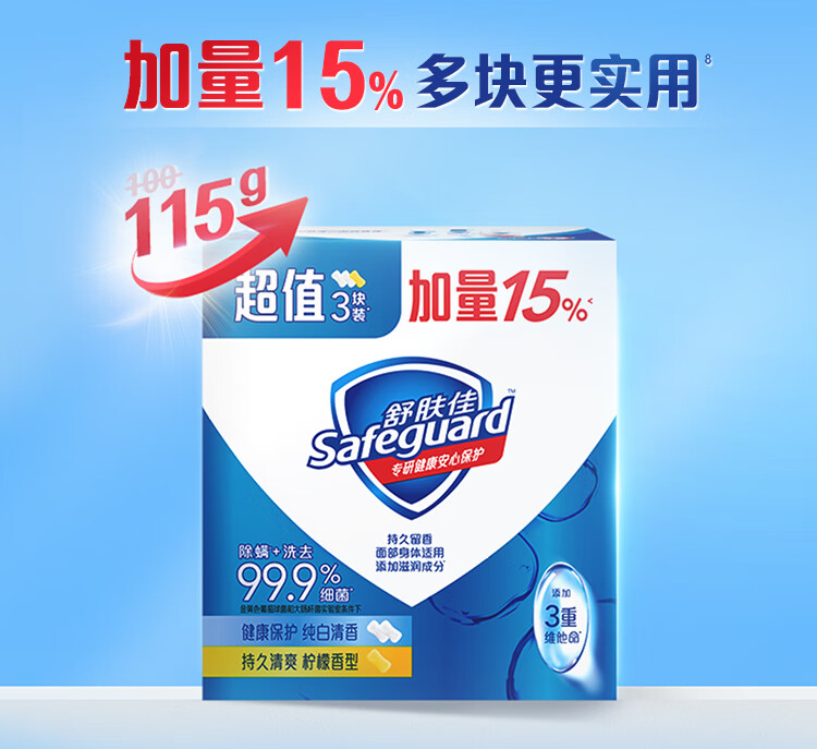 舒肤佳香皂 纯白清香115g 99.9%除菌 洗澡沐浴皂肥皂 新旧包装随机