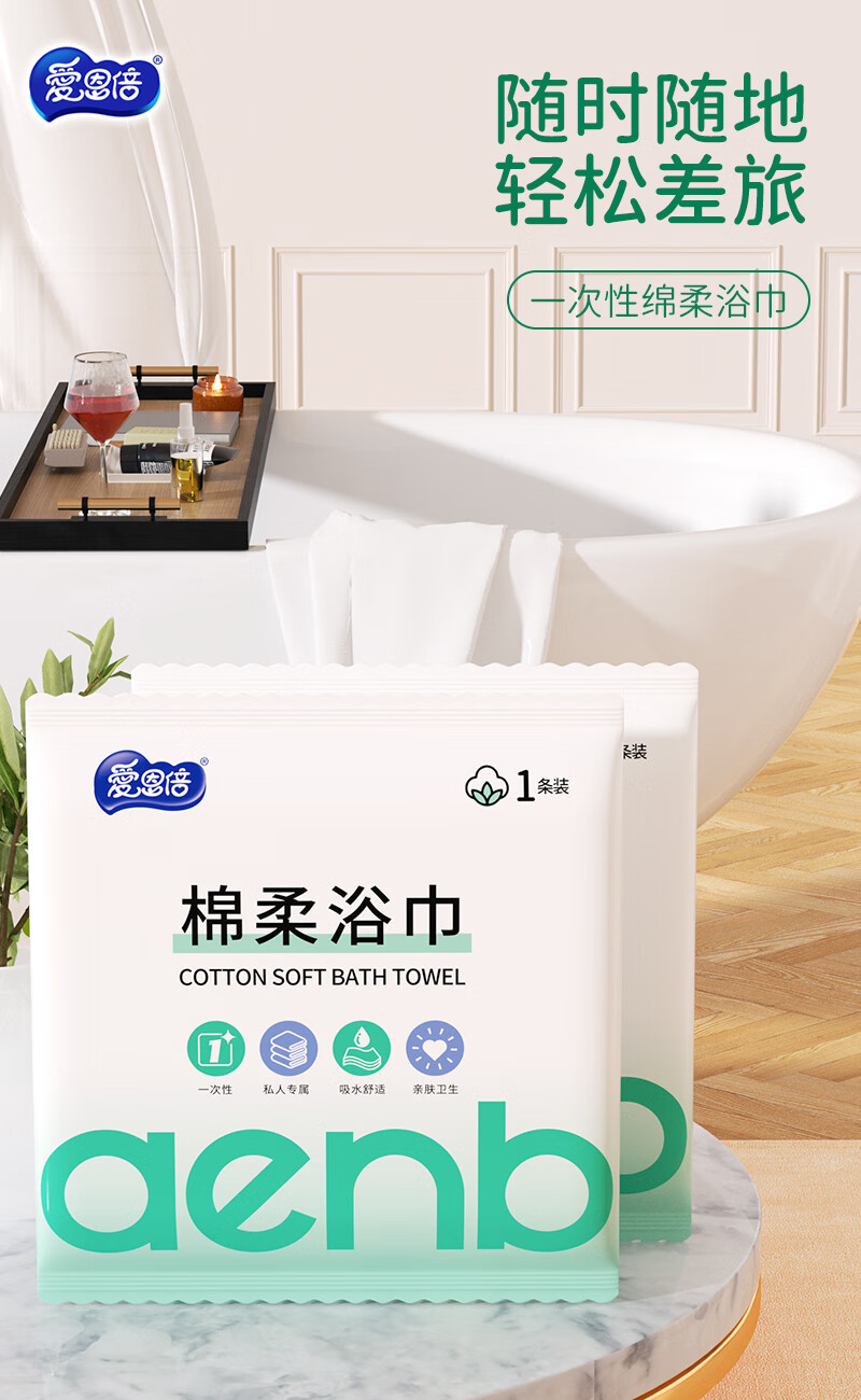 爱恩倍一次性浴巾1包干湿两用珍珠纹旅游出差加厚大号便携毛巾儿童可用